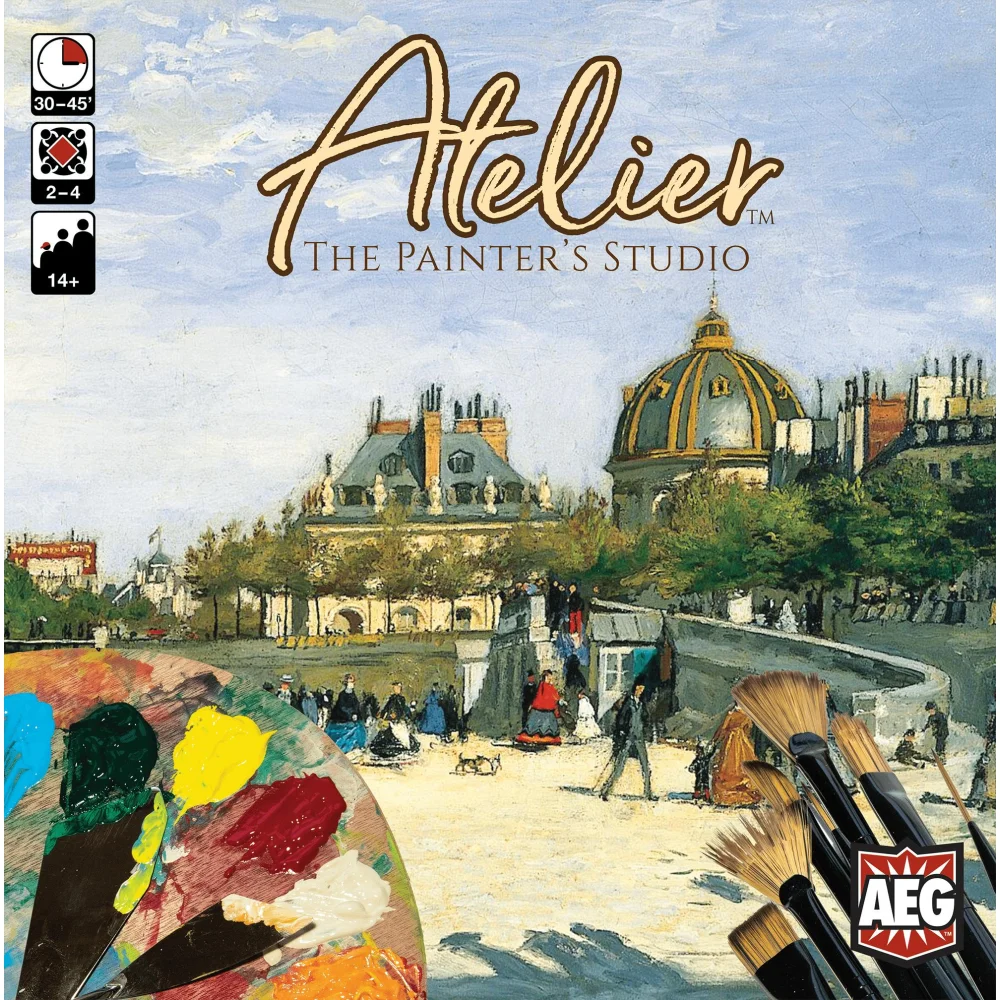 Atelier: The Painter’s Studio is played in rounds. During each round, players take turns using one or more of their dice to accomplish tasks. Turns proceed clockwise around the table until all players have used all four of their dice. Once the round is over, all players recover their dice, pass the starting player token clockwise, and start the next round. Players use their dice to collect students, paint colors, and ultimately complete paintings. The completed paintings contribute to their studio’s reputation, which will in turn open up additional actions that can be taken.