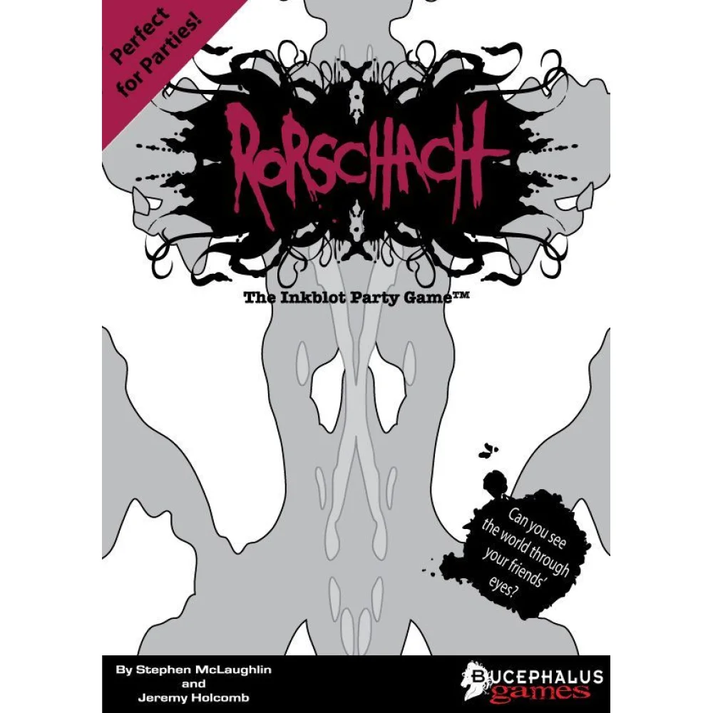 Rorschach contains 100 new and unique inkblot cards that are large, widely varied, and graphically stunning. The question deck covers a broad range of topics, keeping play fresh every time. One expansion is planned for the game, adding an even larger selection of questions and blots, and additional questions and inkblots will be available to print from www.bucephalus.biz.